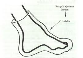 Uzun zincirli moleküllerden, yani polimerlerden söz edebilmek için bir Amazon deneyini aktarmak hoşuma gidiyor. Amazon Kızılderilileri kauçuk ağacının özsuyunu -karahindibanınki gibi gibi beyaza çalan bir tür su- çıkararak ayaklarına sıvarlar. Başlangıçta, sıradan bir sıvı olan kauçuk ağacının özsuyu akışkandır; ancak yirmi dakikalık bir süre sonunda donar ve Kızılderili,böylece, bir çizmeye kavuşur (Şekil 1).